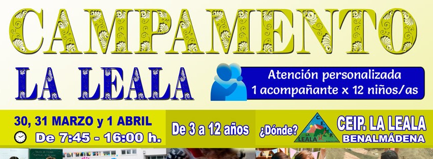 Inscripción Campamento Semana Santa 2026 – CEIP La Leala – Organiza Delia Collado. Del 30, 31 de Marzo y 1 de Abril. Para niños de 3 a 12 años.